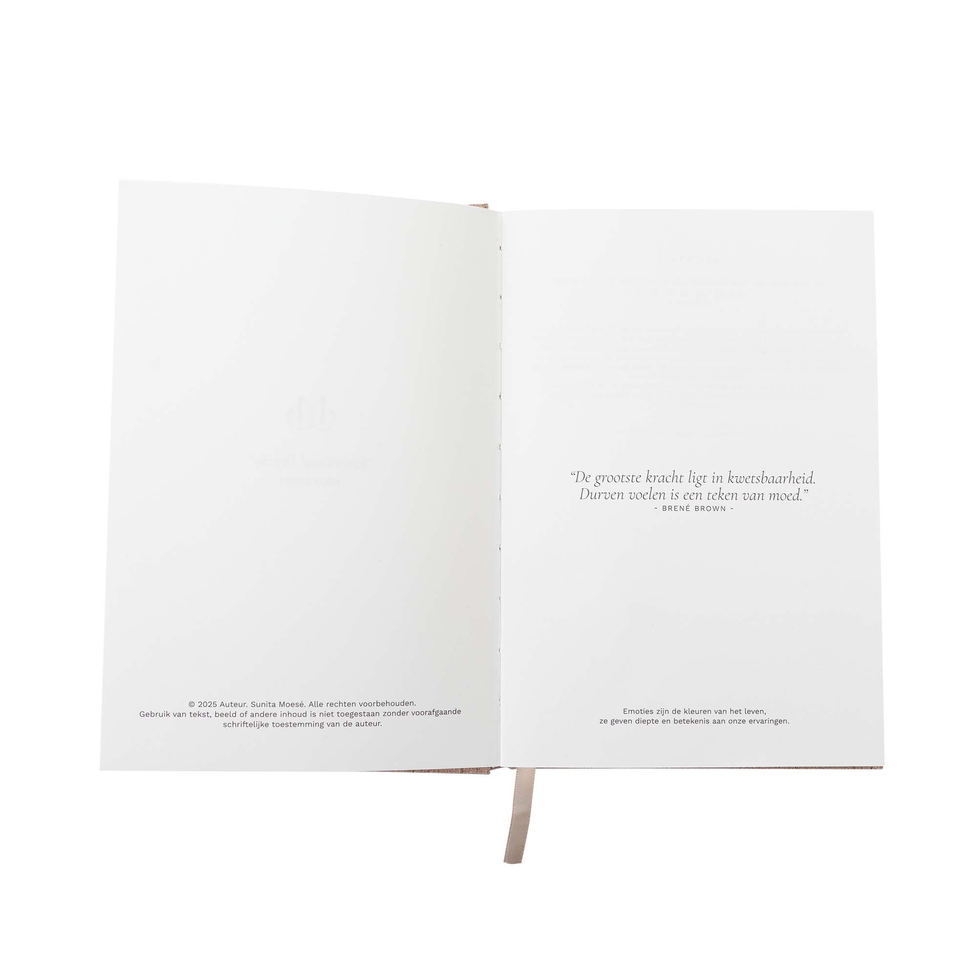 Zet je pad van zelfontdekking en persoonlijke groei voort met “Emotional Depths”, gecreëerd door traumatherapeut Sunita Moesé als onderdeel van een krachtige reeks van vier journals. Dit journal wordt je metgezel bij het blootleggen van emotionele waarheden, het reflecteren op keerpunten in je leven en het verbinden met de kracht van jouw eigen verhaal.